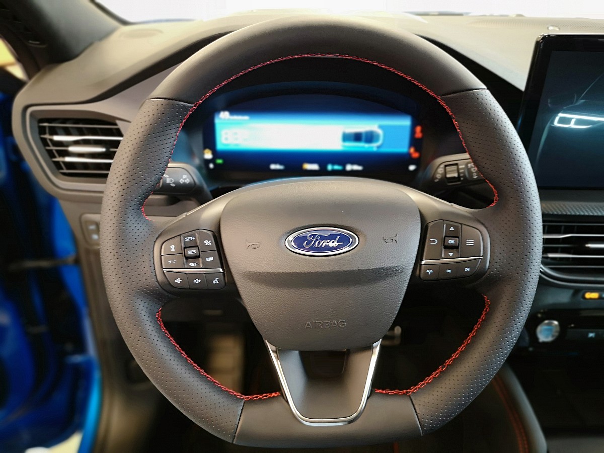 - Lenkrad, ST-Line-Design, unten abgeflacht und mit roten Ziernähten, Sensico in Leder-Optik