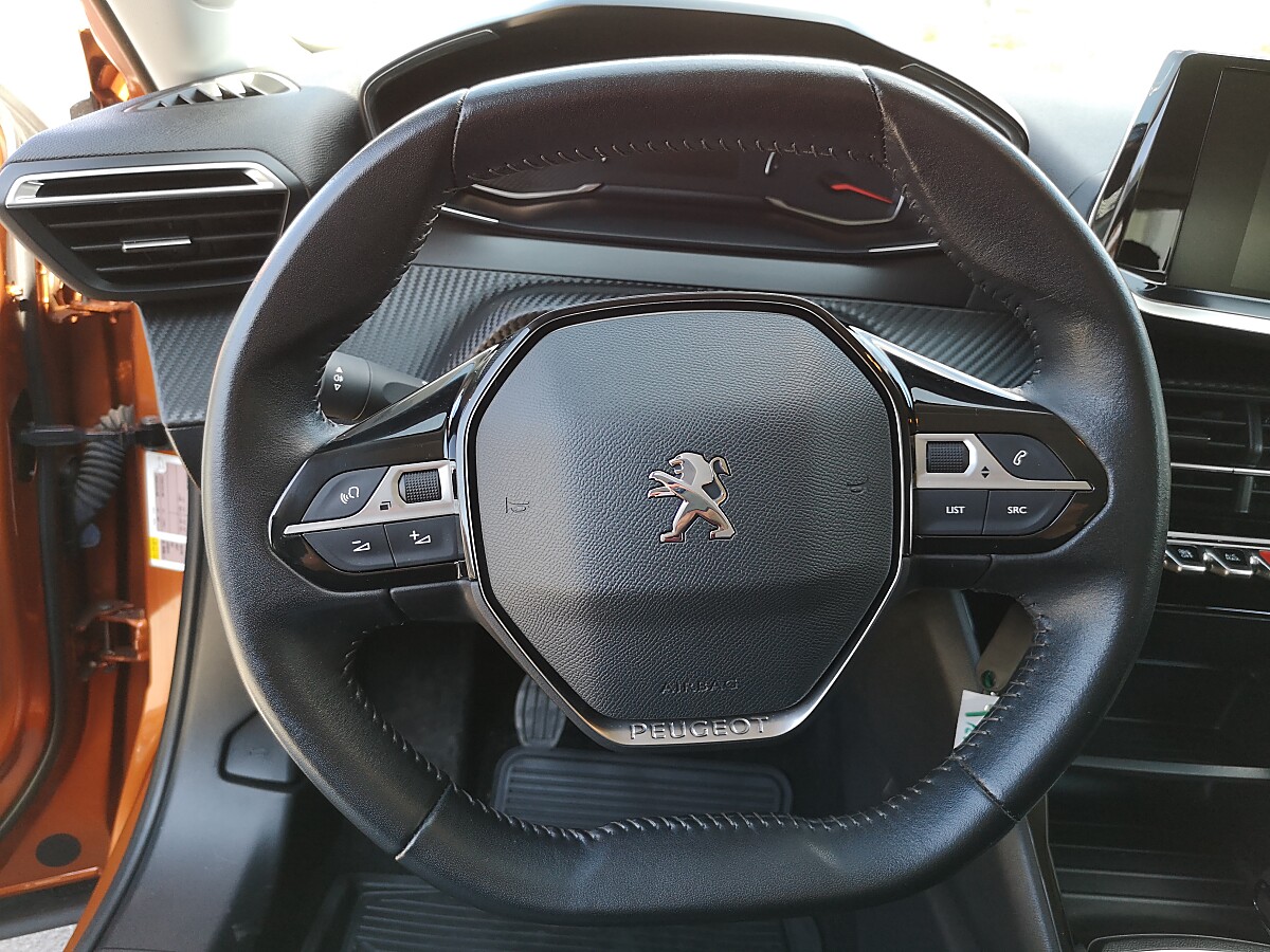 - Kompaktlenkrad aus Leder mit verchromtem Löwen und integrierten Bedienelementen
